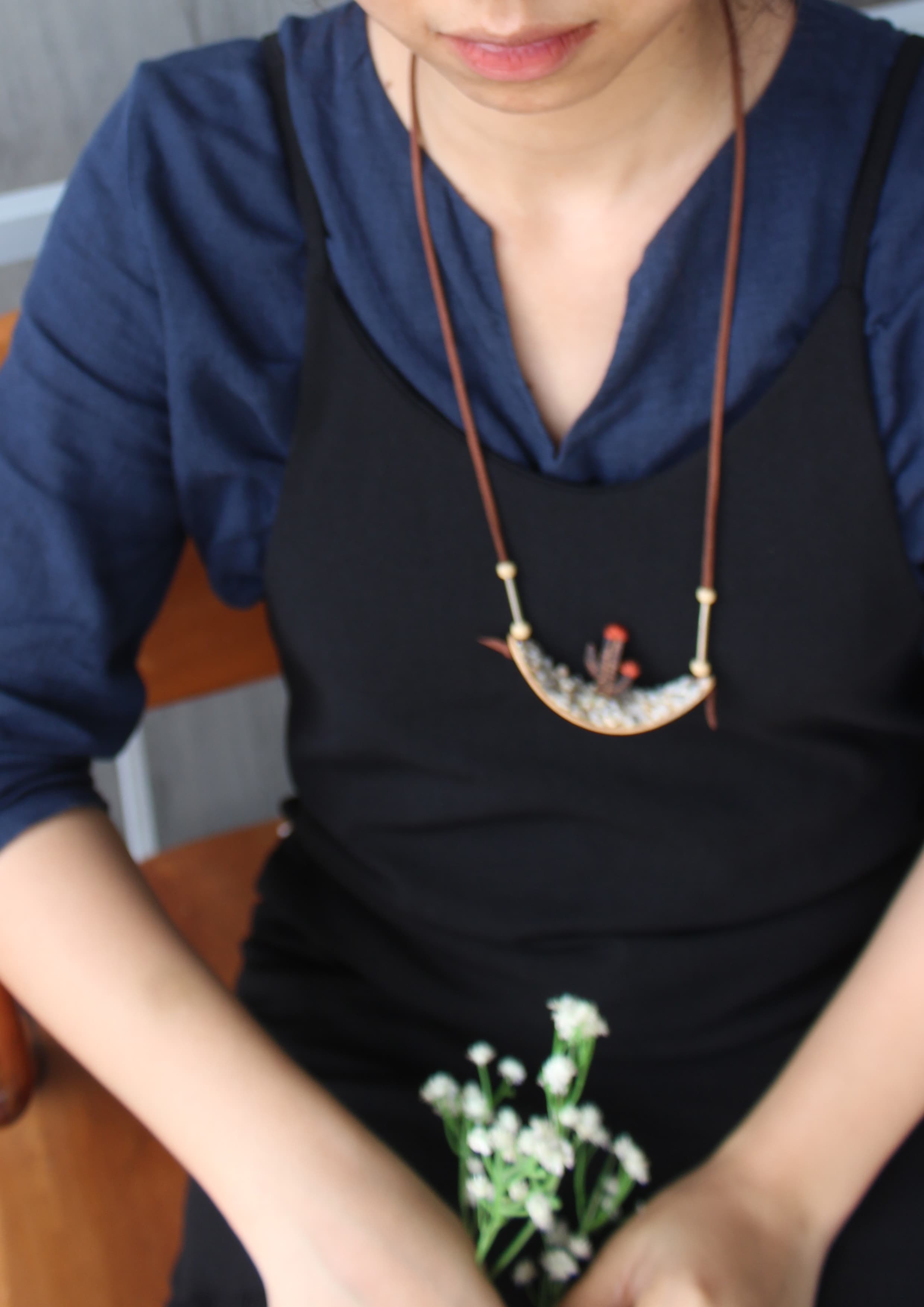 Dây chuyền gáo dừa phỏng xương rồng trên sỏi đá
