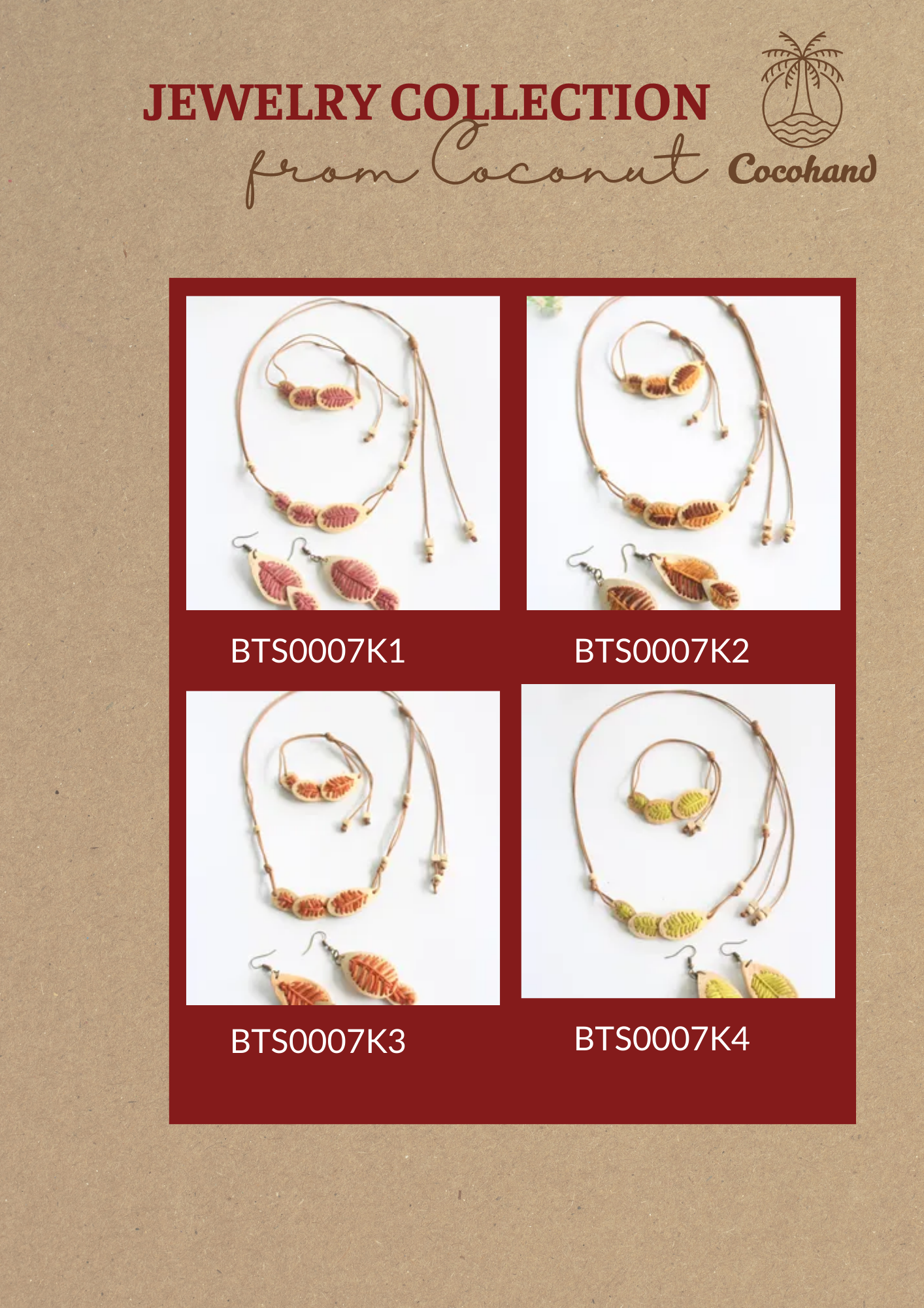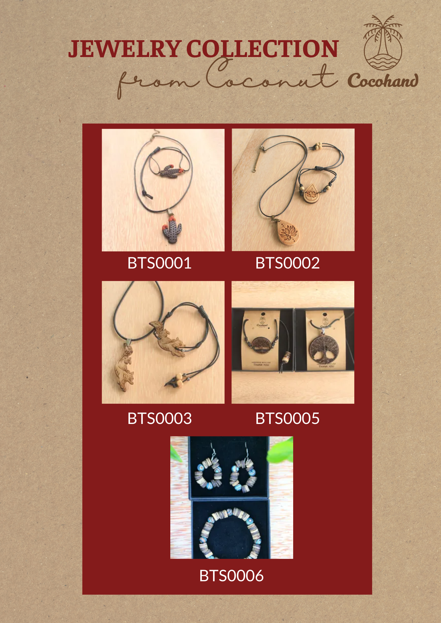 Trang Sức Dừa gồm dây chuyền, vòng tay, bông tai, kẹp tóc được thiết kế đa dạng kiểu dáng, đa dạng phong cách từ nhẹ nhàng - tinh tế đến chất ngầu - cá tính.