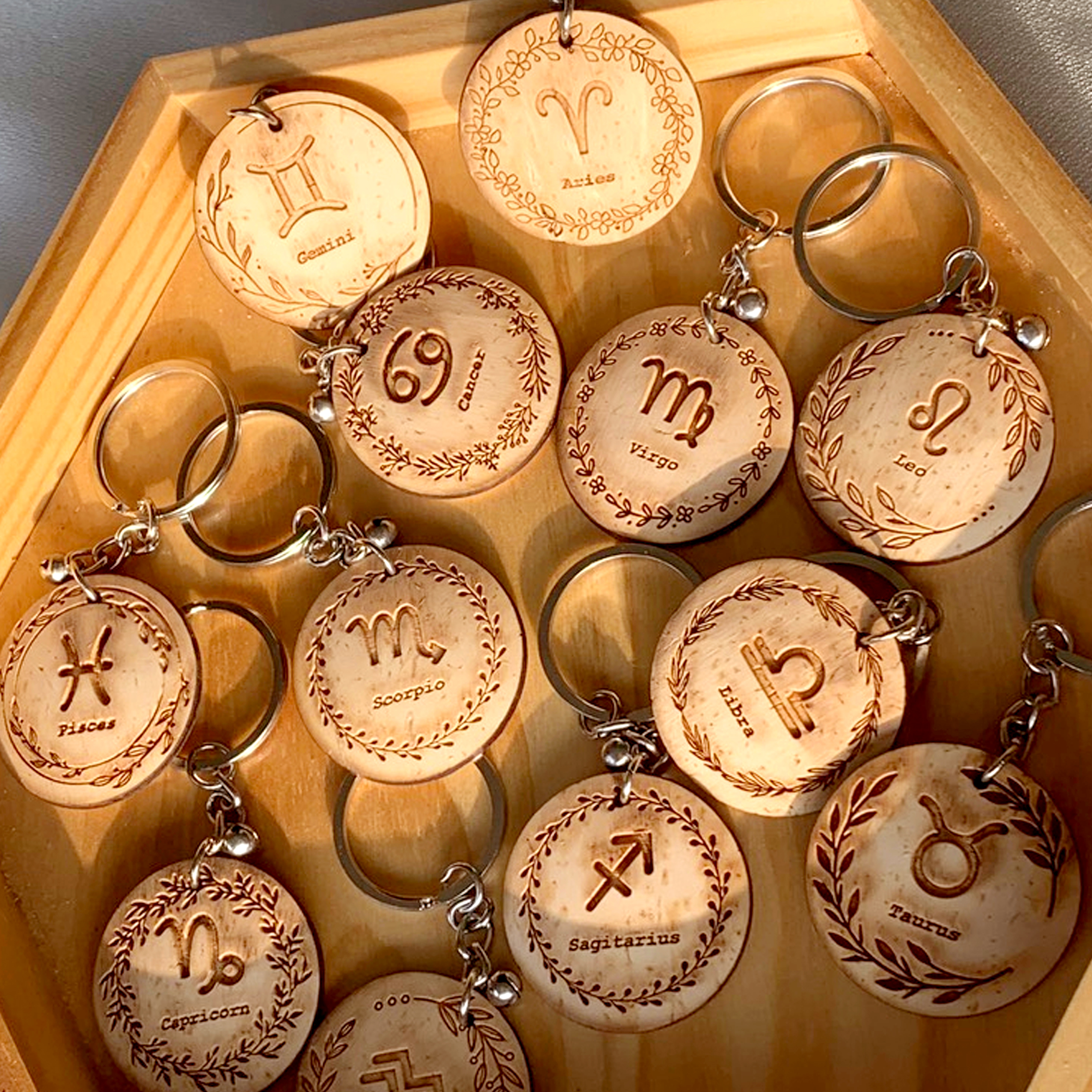 12 cung hoàng đạo được nhà Gáo thiết kế chỉnh chu tâm huyết, dùng làm móc khóa gắn cặp, túi xách, bóp viết, chìa khóa,.v.v..Phù hợp làm quà tặng bạn bè, người thân