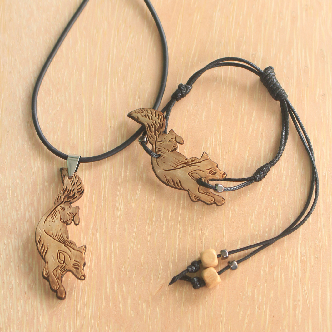 - Nguyên liệu chính và quy trình tạo ra Bộ trang sức Cáo Nhỏ cũng là điều bạn nên quan tâm. Sản phẩm này được làm từ chất liệu gáo dừa và dây da sáp hoặc dây cao su. Chúng tôi chỉ sử dụng những nguyên liệu tự nhiên và không gây hại cho môi trường. Quy trình sản xuất của chúng tôi tuân thủ các tiêu chuẩn chất lượng cao và đảm bảo tính thủ công thiên nhiên.
