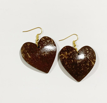 - Nguyên liệu chính để tạo ra Bông tai Dừa dáng trái tim là gáo dừa da me tự nhiên kết hợp với các phụ kiện trang sức khác.