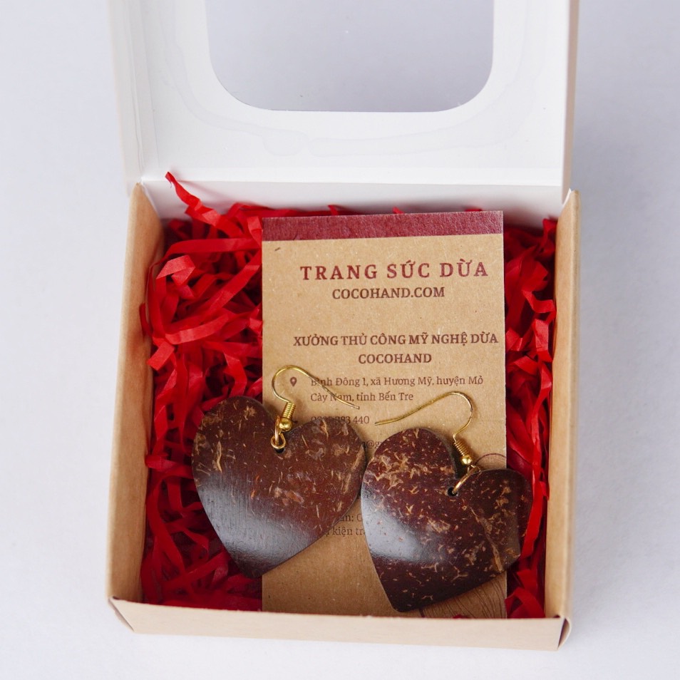 - Khách hàng nên chọn mua Bông tai Dừa dáng trái tim của Cocohand vì chúng được làm từ những chiếc gáo dừa thiên nhiên, không hóa chất, không ảnh hưởng đến sức khỏe người tiêu dùng.