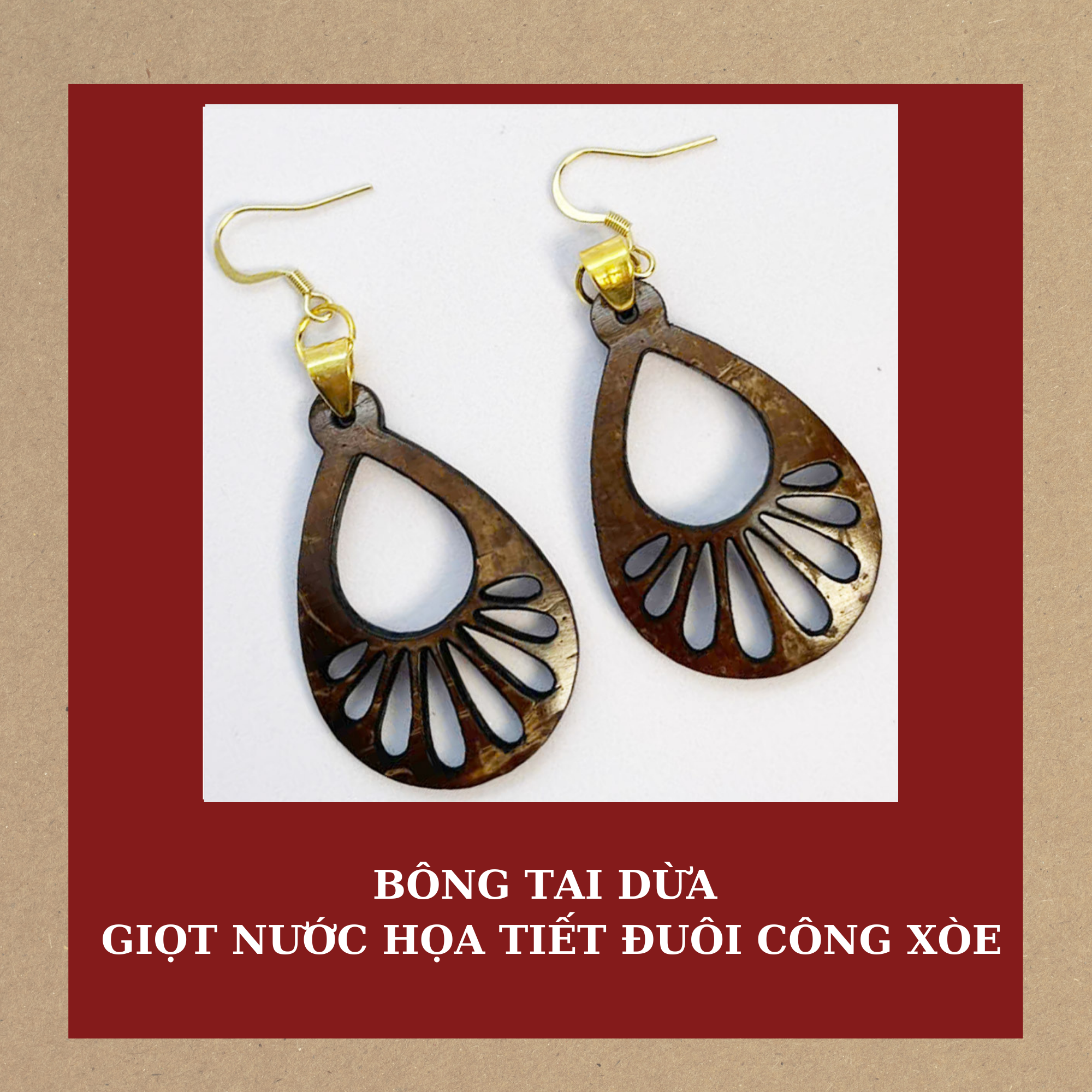 BÔNG TAI DỪA GIỌT NƯỚC HỌA TIẾT ĐUÔI CÔNG XÒE
