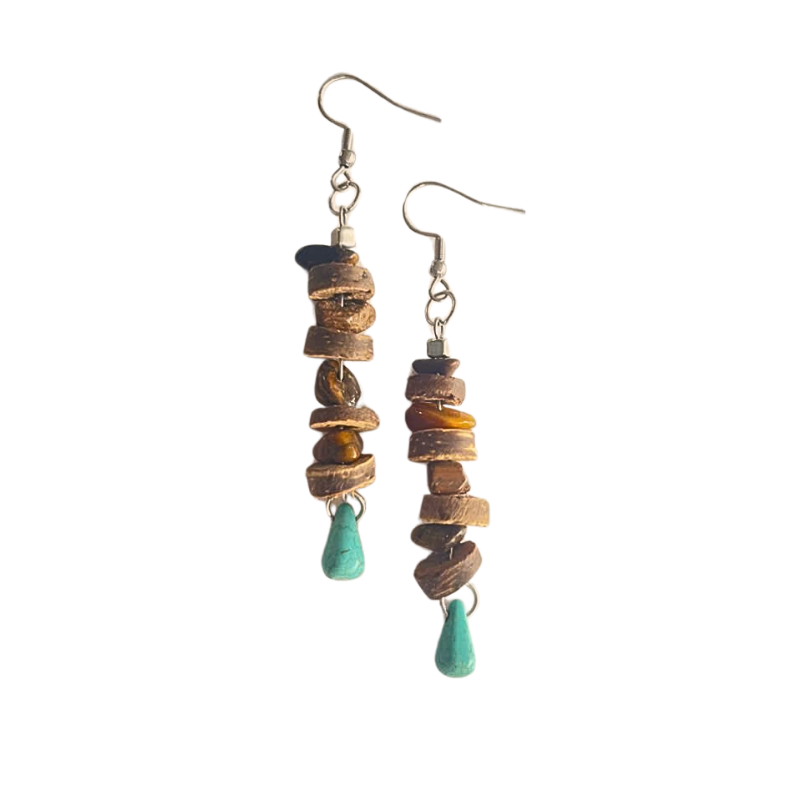 Bông tai chuỗi dừa phối turquoise và đá mắt hổ của Cocohand không chỉ là phụ kiện thời trang độc đáo, mà còn mang lại giá trị bền vững và thân thiện với môi trường. Sản phẩm được làm từ nguyên liệu thiên nhiên an toàn, không gây kích ứng da, giúp bạn thoải mái khi đeo suốt ngày dài.