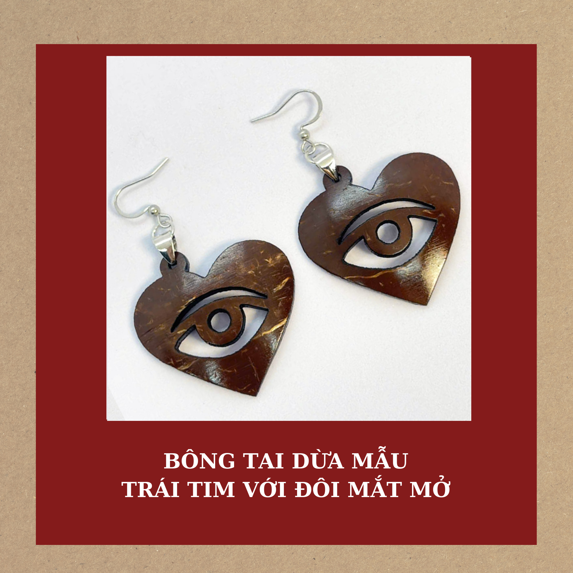 BÔNG TAI DỪA MẪU TRÁI TIM VỚI ĐÔI MẮT MỞ