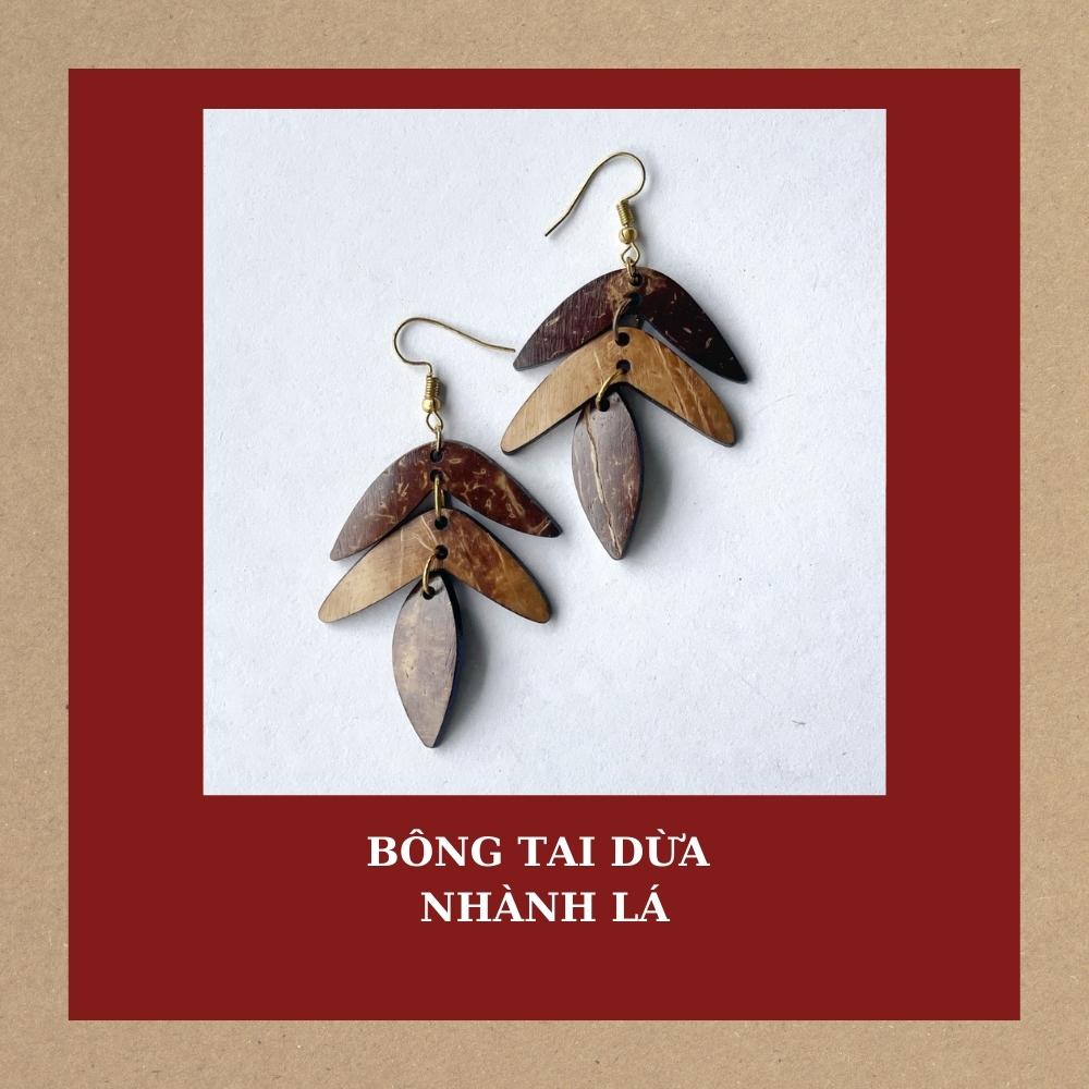 - Bông tai dừa dáng lá xếp tầng có sự độc đáo riêng biệt. Được chế tác từ chất liệu thiên nhiên, bông tai mang lại cảm giác nhẹ nhàng và thoải mái khi đeo. Thiết kế xinh xắn và tinh tế giúp bạn tỏa sáng trong mọi bức ảnh du lịch. Bạn có thể phối hợp sản phẩm này với nhiều loại trang phục khác nhau, từ cổ lọ, maxi, đầm xòe cho đến trang phục jean/denim cá tính.