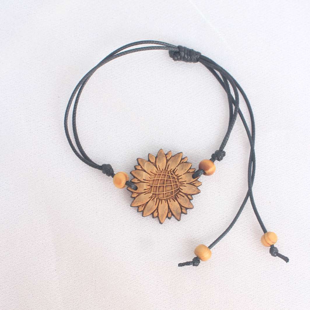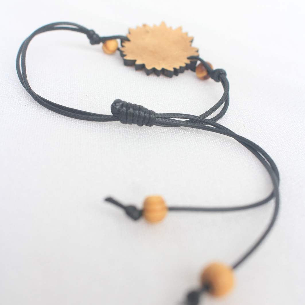 - Vòng tay hoa Hướng Dương có hình ảnh tươi sáng và tốt lành, mang lại năng lượng tích cực và giúp tạo ra không khí sôi động. Nó cũng giúp gắn kết mọi người với nhau, đặc biệt là gia đình, bạn bè và người thân. Với chất liệu gáo dừa tự nhiên, dây bông sáp và hạt gỗ nhỏ, sản phẩm có dây dài 22cm và kích thước mặt gáo là 3x3cm.