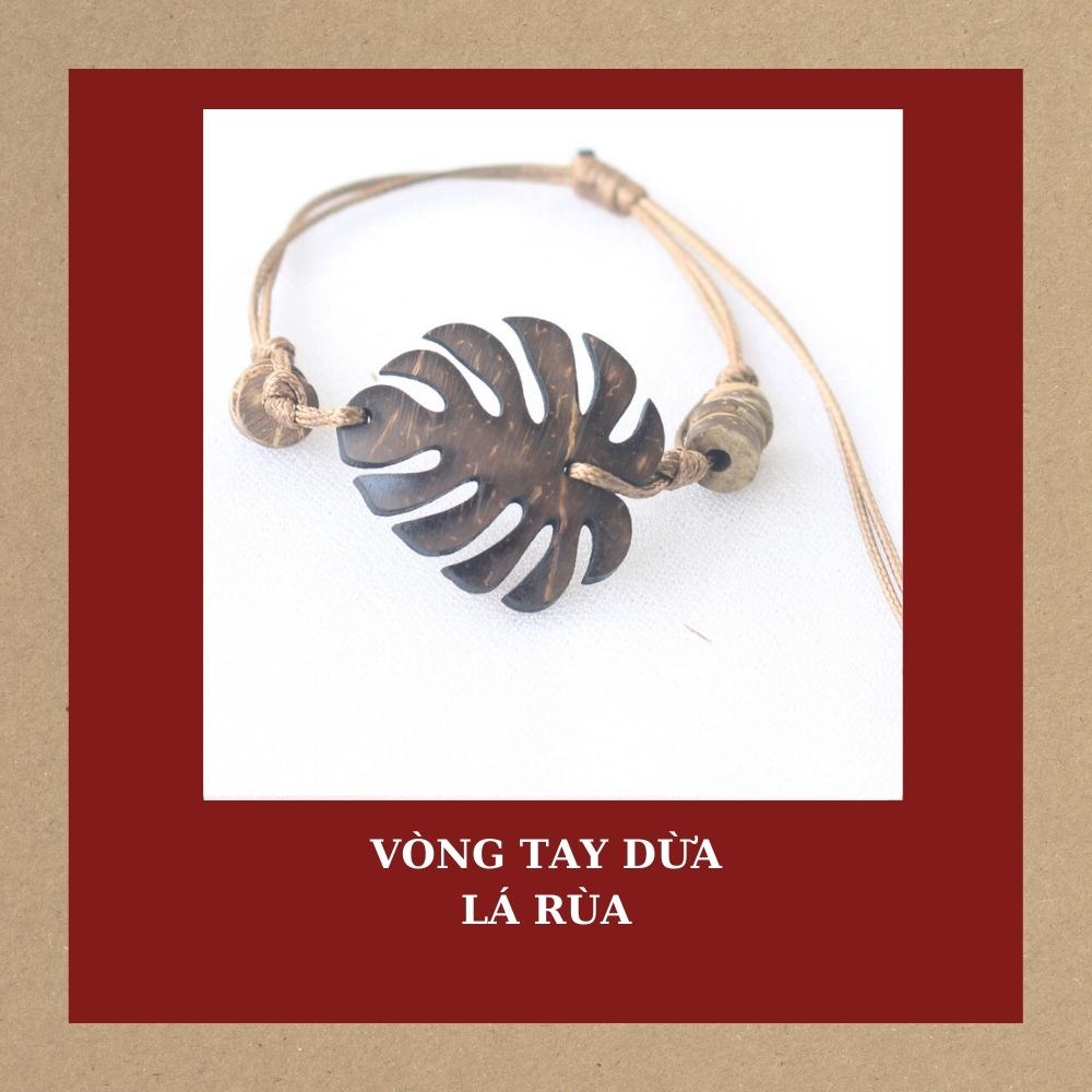 - Vòng tay Lá Rùa được làm từ gáo dừa trắng, kết hợp với một số phụ kiện như dây và hạt gỗ nhỏ. Vì nguyên liệu chính là gáo dừa từ thiên nhiên nên sản phẩm rất gần gũi với môi trường và đảm bảo an toàn sức khỏe cho khách hàng.
