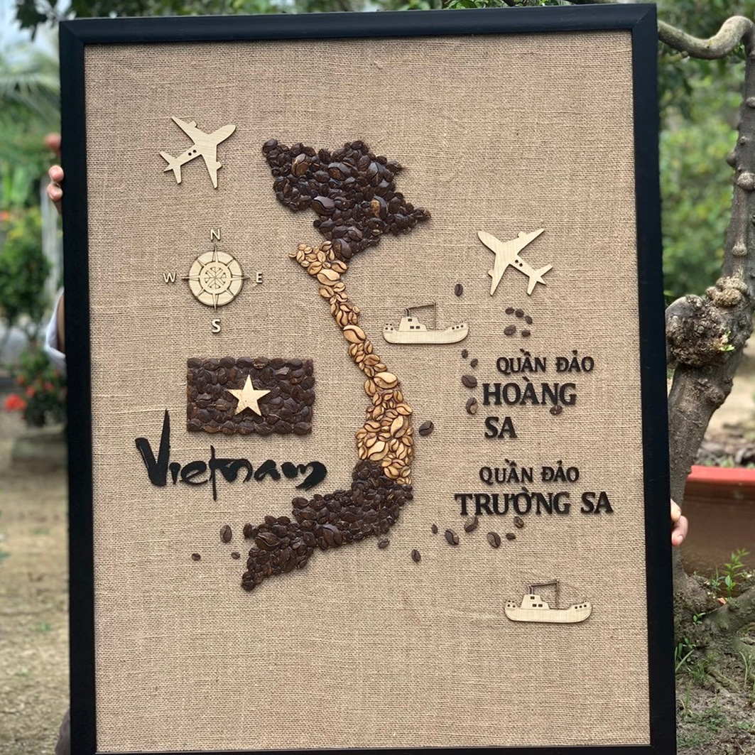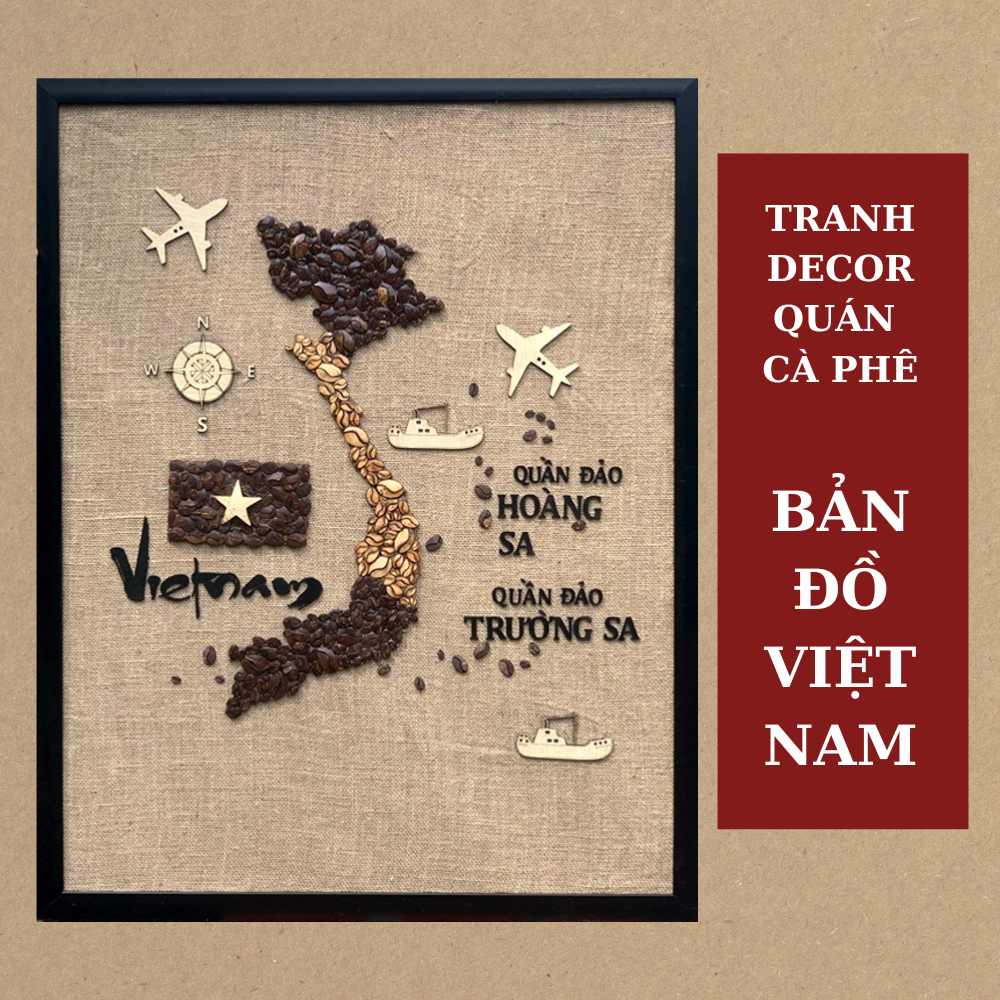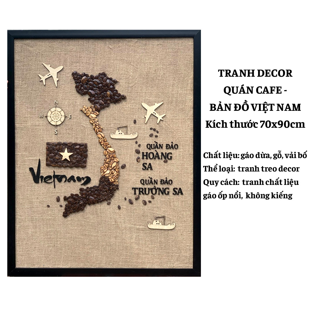 - Khách hàng nên chọn mua Tranh dừa decor 70x90cm - Bản Đồ Việt Nam vì sản phẩm giúp bạn tạo điểm nhấn độc đáo, ấn tượng trong không gian quán cafe, quán ăn mang tinh thần nghệ thuật.