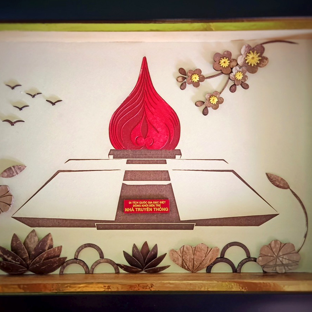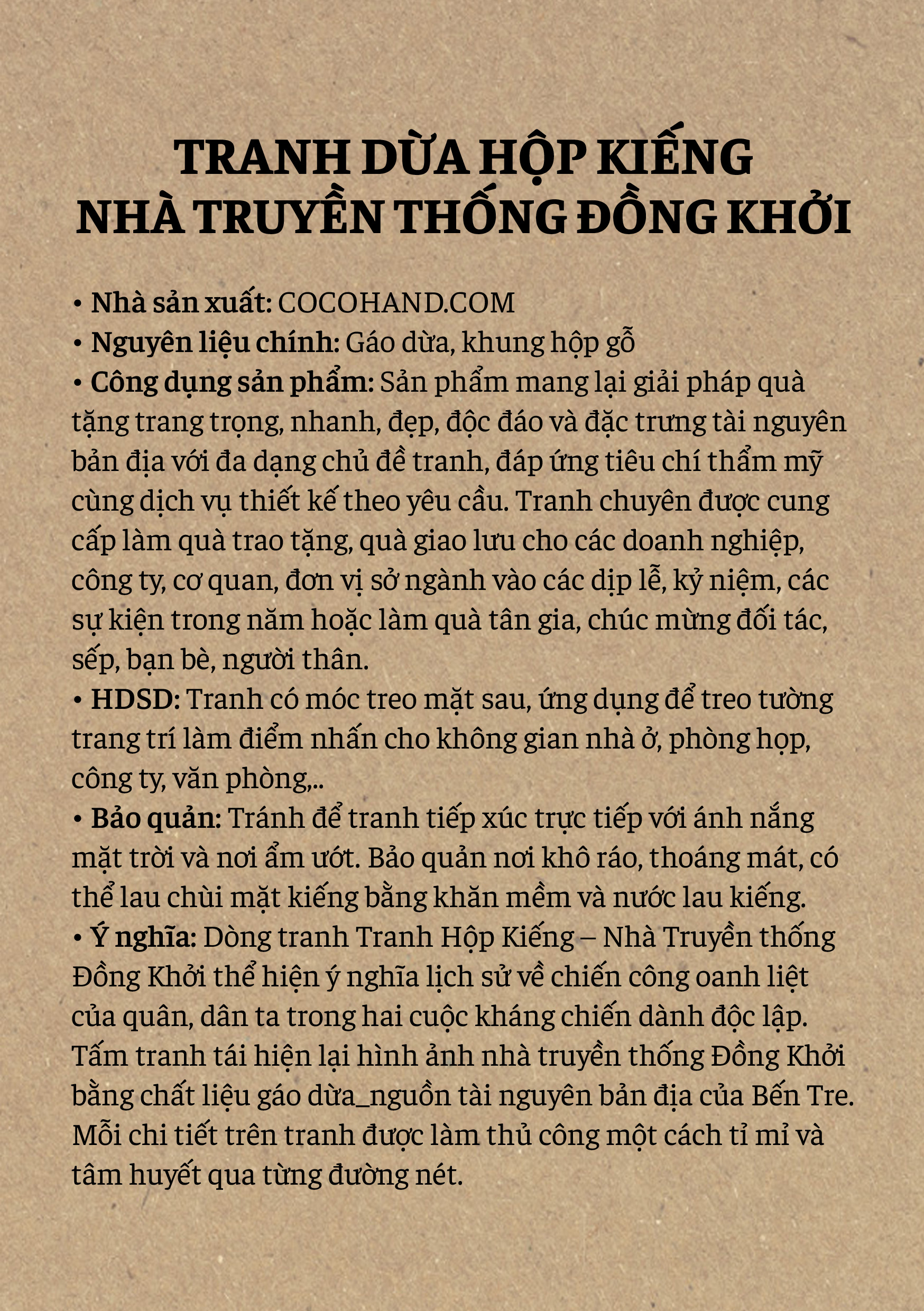 Tranh Hộp Kiếng – Nhà truyền thống đồng khởi của Cocohand được dùng nguyên liệu chính từ dừa, sản phẩm không chỉ thân thiện với môi trường mà còn không chứa hóa chất độc hại.
