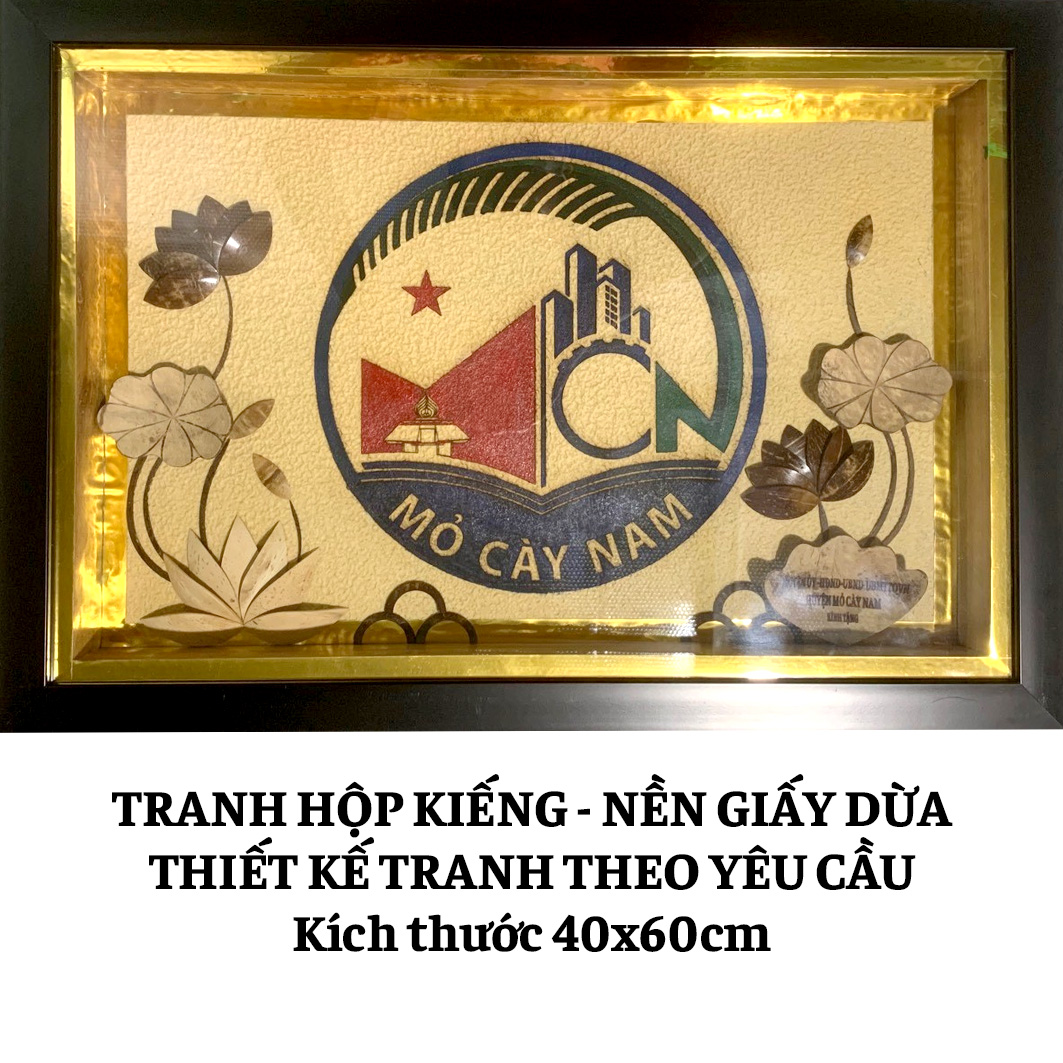 Sự độc đáo của Tranh Hộp Kiếng – Logo doanh nghiệp thiết kế theo yêu cầu nằm ở thiết kế logo tỉ mỉ trên nền giấy dừa. Mỗi chi tiết trên tranh được làm thủ công một cách tỉ mỉ, bạn có thể dễ dàng nhận ra sự tỉ mỉ, tinh tế và đầy tâm huyết trong từng đường nét của tranh.